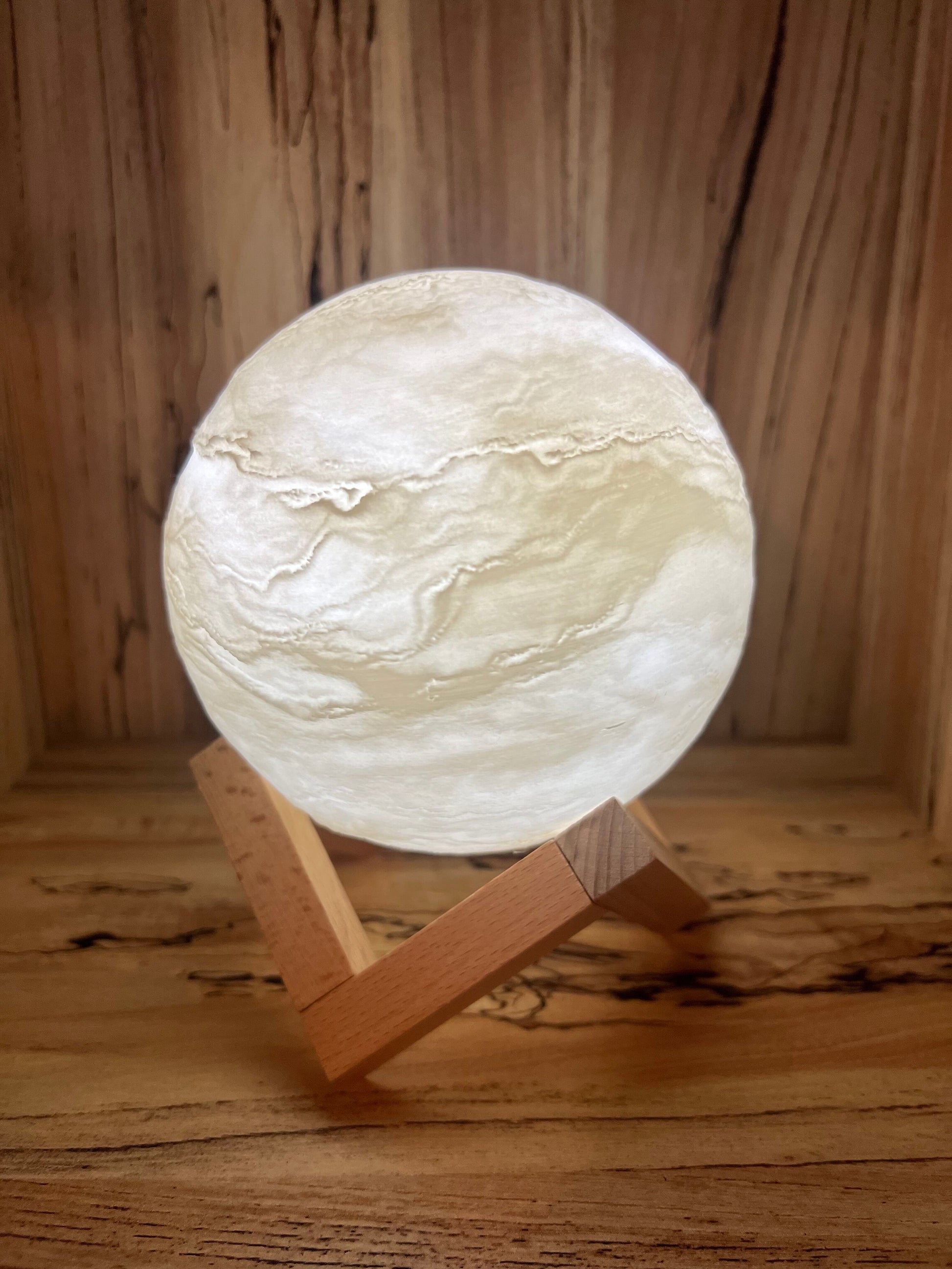 Saturn*, Neptune*, Uranus*, and Pluto* do not have high quality satellite scans yet to create interesting lamps from, so those models are made using some artistic interpretations to make them look better.