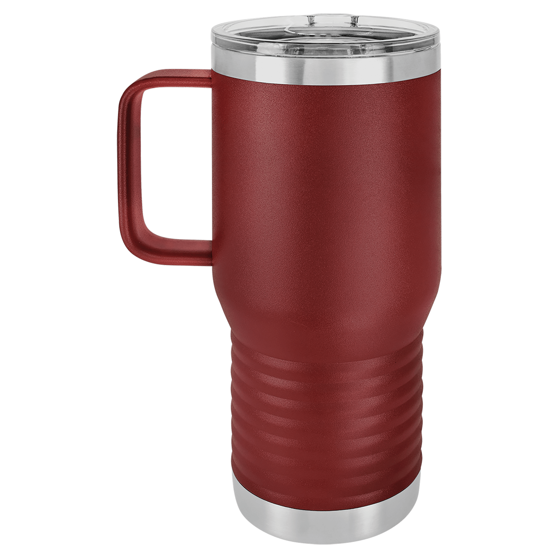 The Polar Camel 20oz Tumbler with Handle utilizes advanced double-wall vacuum insulation technology, providing 2X superior temperature retention compared to standard tumblers. Constructed from premium 18/8 gauge stainless steel (304 Food Grade with 18% chromium/8% nickel composition), this tumbler delivers exceptional durability while maintaining beverage purity. The ergonomic handle and clear slider lid enhance functionality for daily use. Available with custom engraving options—submit your own design (excluding photos) or select from our curated collection, with additional pricing for two-sided or full wrap customization.